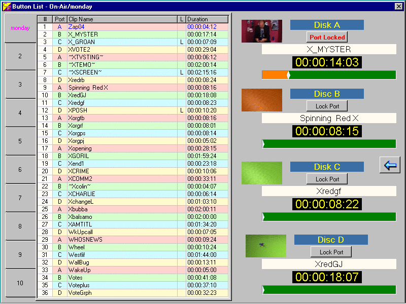 Playout is assisted with a custom keyboard providing instant access to 10 sets of 30 clips