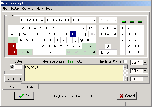 set to trigger a "Play" event from the key combination Shift+Ctrl+P, and transmit